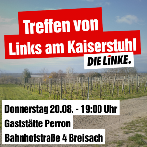 Am 20.08. trifft sich unsere Ortsgruppe Links am Kaiserstuhl in der Gaststätte Perron in Breisach um sich näher kennen zu lernen und weitere Schritte zu planen.